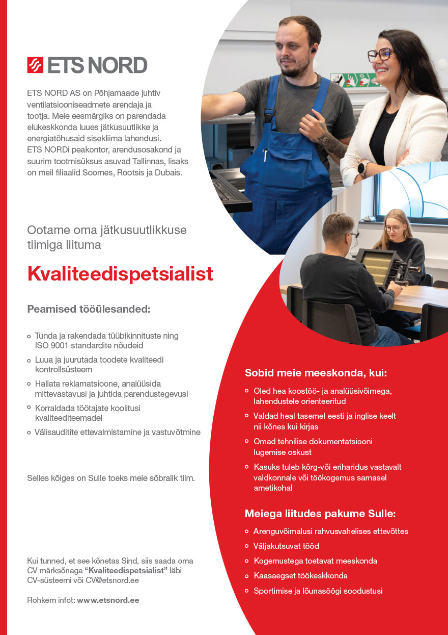 Kvaliteedispetsialist – Sul on suurepärane võimalus rakendada oma oskusi meie dünaamilises ning inspireerivas keskkonnas!