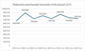 Rekonstrueerimisprojektidele antud ehituslubade arv on olnud stabiilne – viimase kahe aasta jooksul on ümberehitatavate pindade maht olnud kvartalis keskmiselt 770 700 m².